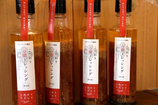 ふと見ると、店内では、chez nous特製「ガーリックチップ入り万能ドレッシング」も販売なさっていました。500円。