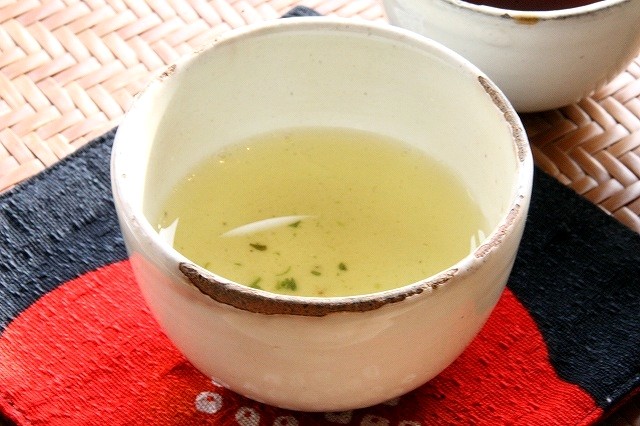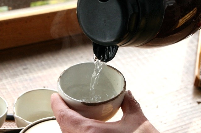まずは湯呑みにお湯の分量を取ります。ちょっと多めが良いそう。
