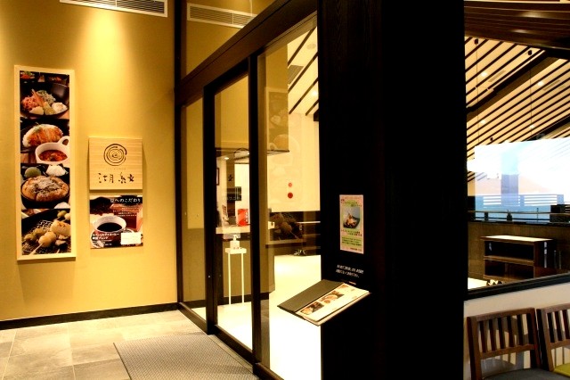 江戸時代、箱根関所周辺で参勤交代の武士が体を休めた箱根宿の”本陣”を現代の箱根で”和モダン”に蘇らせたというのがコンセプトで、1階には、直営売店“おみやげ「箱根百話」(はこねひゃくわ)”のほか、小田原地区の老舗店舗が軒を連ねています。