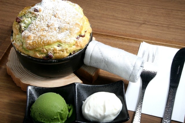 抹茶ベースで、そのまま味わっても、添えられた抹茶アイスや生クリームとともにいただくのもGOOD!