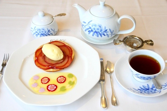 ロザージュ伝統のあつあつりんごパイ 〜バニラアイス添え〜 単品1604円、ティーセット2317円