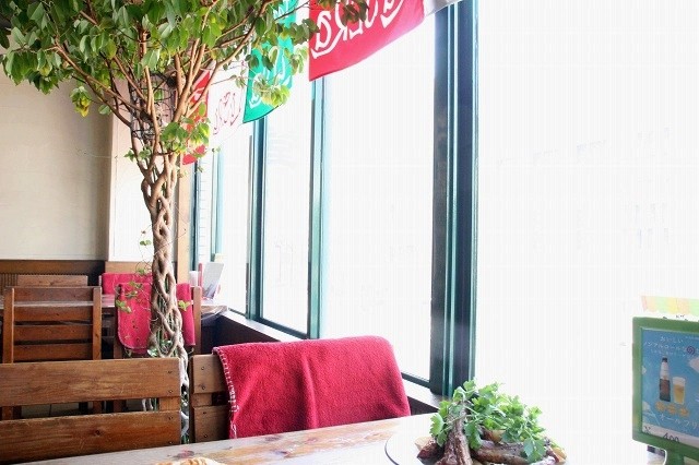店舗は2階にあって、階段を上っていくと、落ち着いたテーブル席、そして明るい窓側の席が広がっています。全部で約40席。
