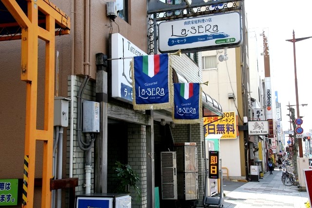 伊予鉄道松山市駅の東方、千舟町通り沿いの南欧家庭料理の店『La・SERa』(ラ・セーラ)。