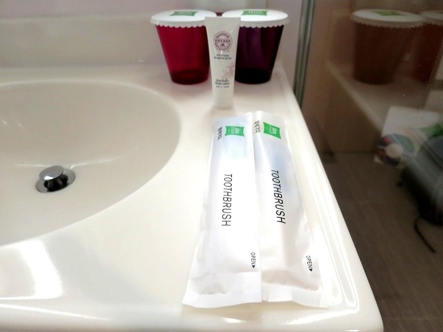 韓国のホテルにはよくあることですが、ハブラシのみ。シェーバーはありません。