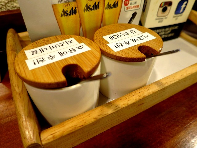 卓上の自家製辛味調味料に、韓国を感じつつ、しばし待つと・・・