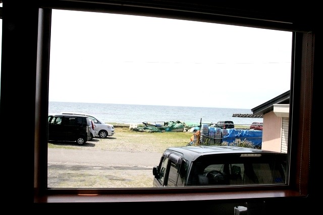 窓の外には函館の海が見えます。