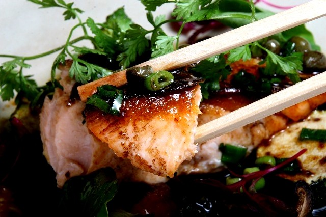 時鮭自体のふわりとした食感や優しい鮭の風味と、焦がしバターソースが一体化。これも旨い!!
