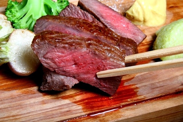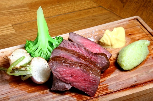「おぐに和牛のステーキ 塩わさびおろしとマスタード」