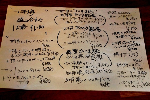 お店のコンセプトは、もう、この黒板を見れば充分でしょう。