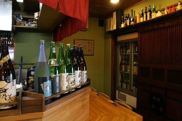カウンター主体の店内に入れば、大きな冷蔵庫に、珍しき日本酒が、ずらり。