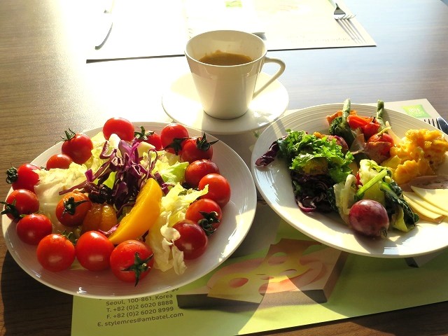 今日もホテルで新鮮野菜ふんだんの朝食ビュッフェを♪