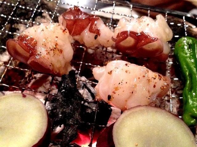 岩手木炭の七輪で、自分で焼いて味わえます。