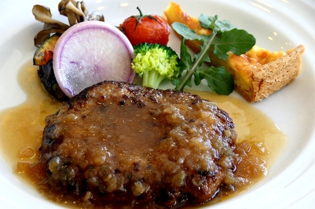 また、ハンバーグにかかっているオニオンソースも、もちろんお店の手作り。ポークの素材の良さを引き立てるよう、和のテイストで仕上げています。