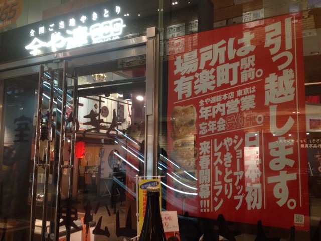 2017年11月13日 全や連総本店東京は、引っ越しします! 毎週月曜の重大会議を経て、やっと発表できる段階に🍀😃✋ ご当地やきとりテイスティングパーク 全や連総本店東京🎵 有楽町駅前に引っ越します。❗❗️❗️️😍😍😍 ・・・ すごい。百数十席ある店舗の引っ越しって、何億円かかるんだろう。。❓😅 しかも次店舗は 日本初のショーアップやきとりレストラン🎵😍 大手町は年内営業。有楽町は来春開幕です❗️❗️❗️ 「やきとり(東京)」カテゴリの最新記事 < 前の記事次の記事 >