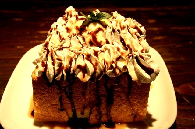 メープルとコンデンスミルクの特製シロップとチョコシロップ、生クリームが載ったトーストはボリュームたっぷりで、登場した瞬間に「わ!」と思うかもしれませんが、意外にも爽やかな甘さと後引く美味しさで、サクサクっと味わえてしまう不思議さが。