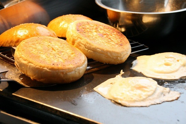 パテ2枚、チーズ、タマゴ、ベーコン入り。どんな感じに完成するのでしょうか?ワクワクします♪