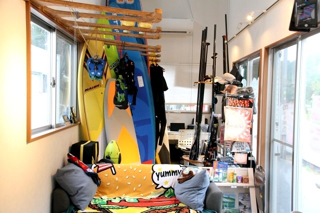 なので店内にはボードなども置かれ、素敵なウォータースポーツ的な良さも広がっています。