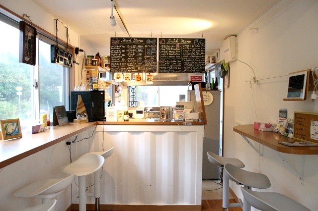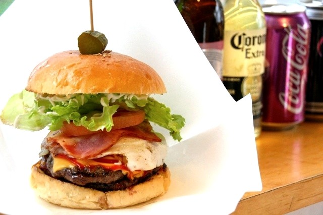 そして対面を見れば、バーガーショップです。スタイリッシュで、ちょっとアメリカ的な雰囲気もいいですね。奄美初の本格的アメリカンスタイルバーガーショップ。カウンター8席+ソファー席。