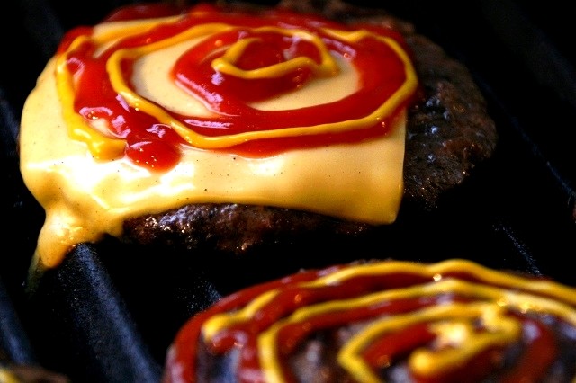 ケチャップ&マスタード。渦巻タイプのかけ方が個性的!