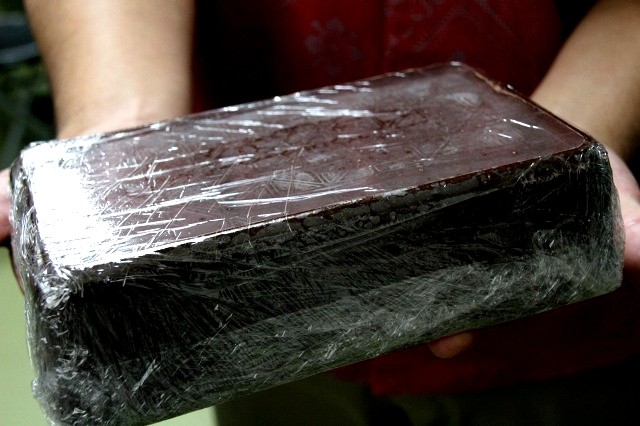 こちらが、チョコレートの塊。これを板チョコに仕上げていくのです。