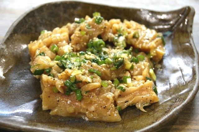 上質でしっとりとした食感。旨みの凝縮した味わい。そして、ニンニクやねぎを包み巻いていただけば、ふくよかな香ばしさが全体に広がります。
