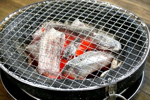 卓上で、七輪を用いて備長炭で焼くスタイルです。宮崎ではまだ珍しいですね。