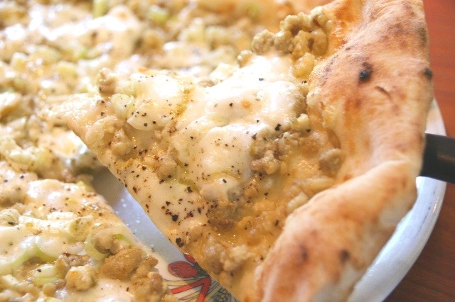 トッピングも地元の黒岩土鶏に宮崎産の白ねぎ、ダイワファームの最高級モッツァレラチーズなど。宮崎の食材の良さもふんだんに取り入れたピッツァです。