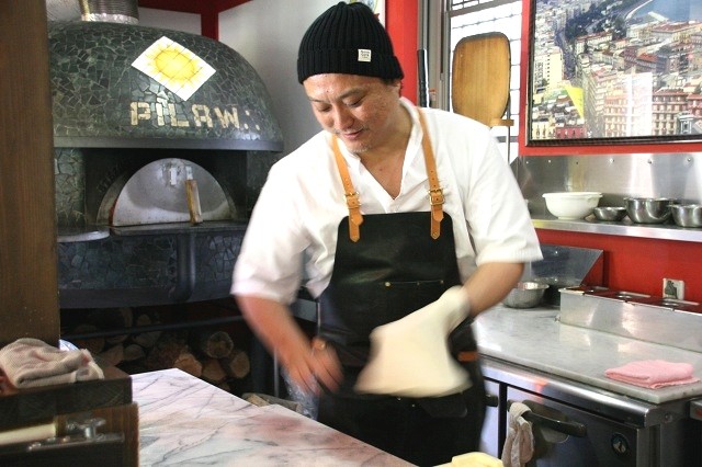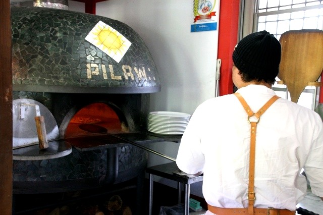奥にはナポリ直送の薪窯が!この薪窯を拝見しただけで美味しさが分かるというもの。そうなんです、『PILAW』は宮崎県初の「真のナポリピッツァ協会」認定店。