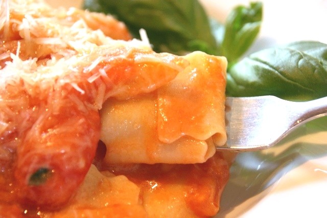 チェリートマトとパルメジャーノの自家製パスタ (コースの一部)