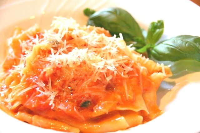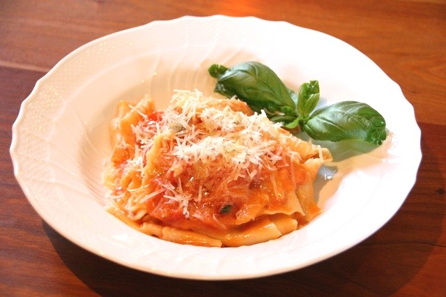 「チェリートマトとパルミジャーノチーズの自家製パスタ」