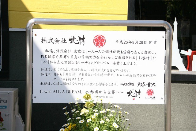・・・なかなか、店先に企業理念を描く店舗は少ないですが、真剣さがにじみ出てきますね。