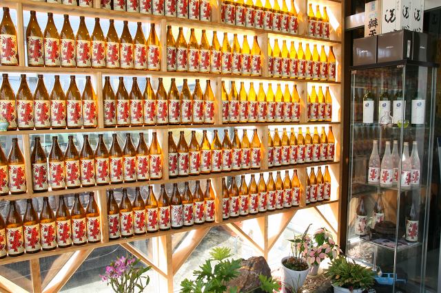 素敵な瓶が並んでいると思ったら、都城「大浦酒造」の「みやこざくら」という芋焼酎だそう。地元愛がふんだん。