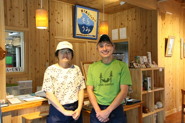ご主人の毛利哲(さとし)さんと、奥様の みおさんが二人で切り盛りなさるジェラートやさん。毛利さんは横浜出身、奥様は東京出身ですが、もともとスキューバダイビングと山登りが大好き。「海外も行きましたが、屋久島はその両方ができる地で、移住することを決めました」