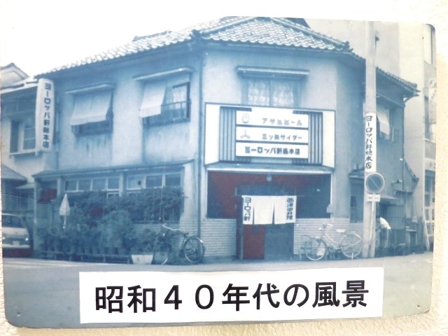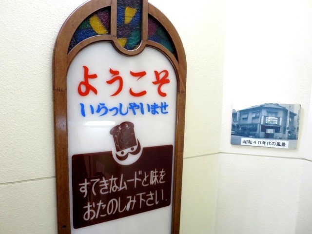 2階へと上がる階段の途中に昭和40年代の店舗風景の写真が飾られていました。