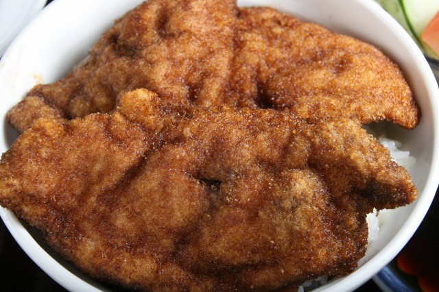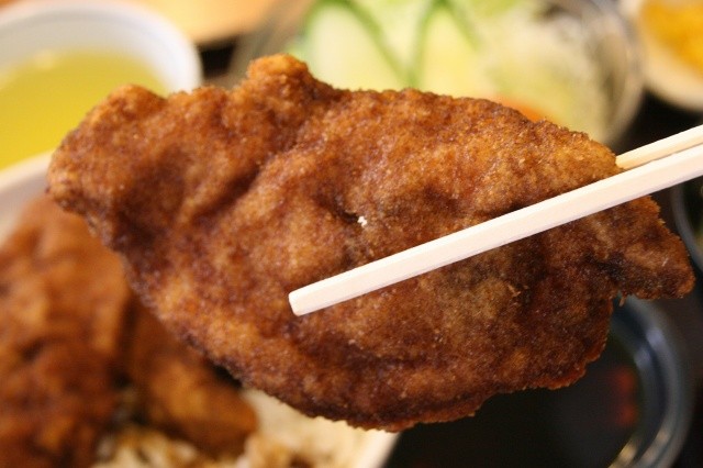 薄くスライスした上等のロース・モモ肉を目の細かな特製パン粉にまぶし、ラード・ヘッドでカラリと揚げたカツを、熱々のうちにウスターソースをベースに各種の香辛料を加えた秘伝のタレにつけ、熱いご飯にタレをまぶした上にのせたカツ丼。