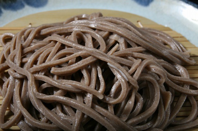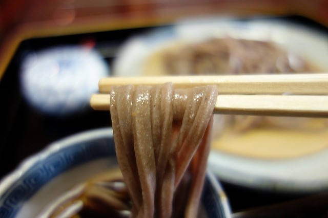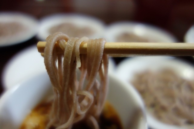 太打ちの田舎そばタイプで、挽きぐるみのそば粉を用いているため、そばの風味がより際立っています。太打ちなので食感もしっかり。