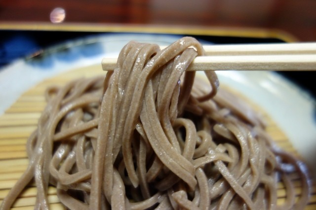 北海道は幌加内の玄そばを丸抜きし、中心部分のそば粉十割で、水捏ねしたあとに、伸ばして手打ち。そば本来の味と香りが楽しめます。