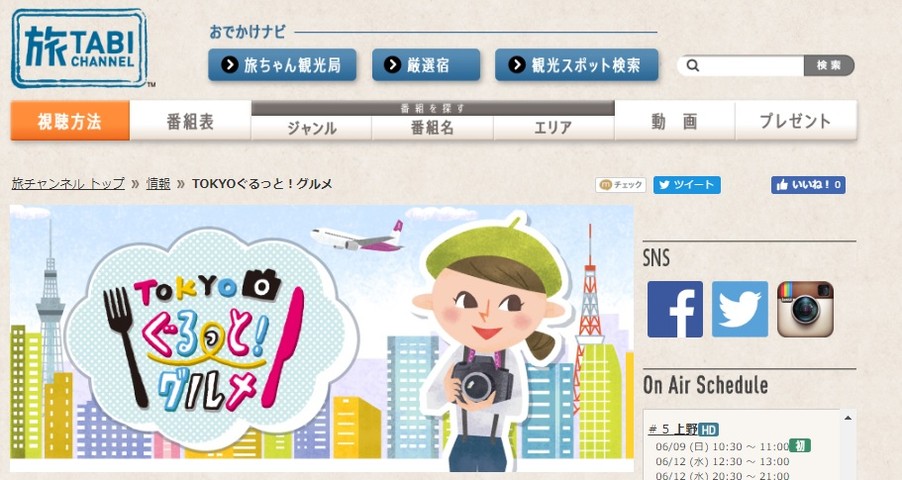 毎月レギュラー出演させて頂いてる、スカパー!「旅チャンネル」の「TOKYOぐるっと!グルメ」