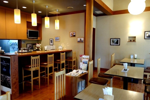 店内は木のぬくもりが活きたテーブル席が主体で、11時〜14時には季節のお昼膳、16時まではお雑煮ややき餅、おしるこなどのお餅カフェが味わえます。