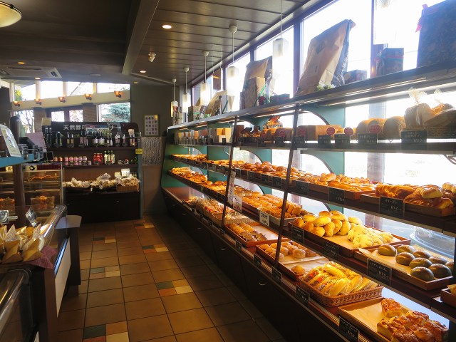 約120種類のパンが有名で、店内奥のイートインができるカフェスペースではモーニングから通常のパンなどが味わえるとあって常に大盛況。本社と工場も建っています。
