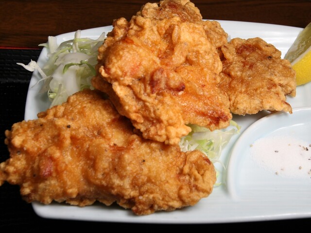とりの唐揚げ。大きくてボリュームたっぷり。テイクアウトすることも可能だ