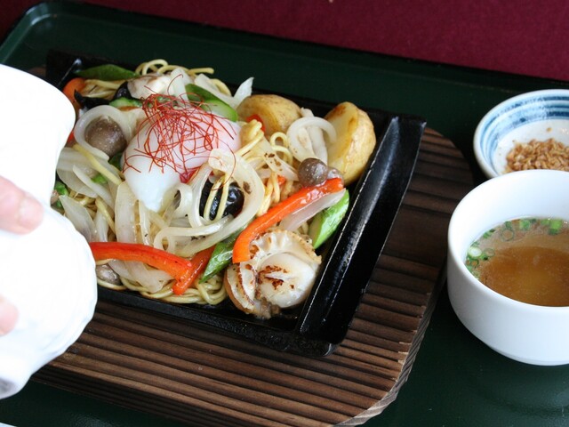 老舗ホテル内「シェルブルー」でオホーツク北見塩やきそば