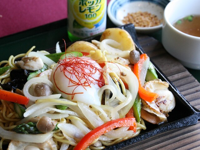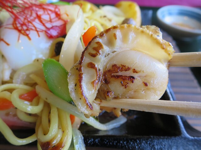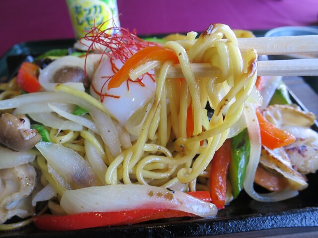 北海道産小麦粉を主原料とした焼きそばは、焦げた香ばしさとモチモチが共存しています。
