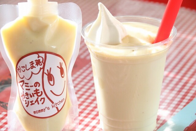 焼きいも風味の斬新な、焼きいもシェイク。持ち帰り用のフローズンタイプも