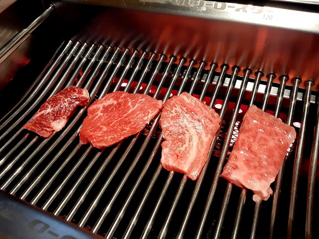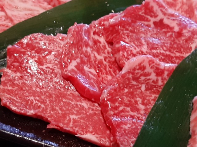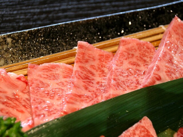 A5ランクの極上ロース。サシの美しさに惚れ惚れする。タレor塩で味わう