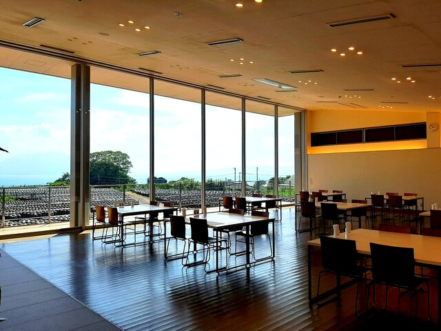 坂元のくろず「壺畑」レストラン。壺畑や桜島、錦江湾を眺めながら、さまざまなくろず料理を堪能できる