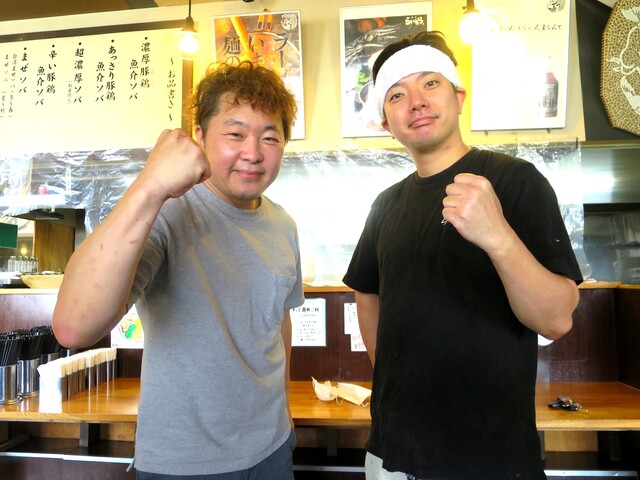 職人気質で常にラーメン作りに真剣な三上玲(左)さんと「麺屋らいぞう」店長の福士雄太さん