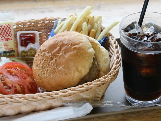 明治時代、旧会津藩士が三沢に移住し、広沢安任が開設した洋式牧場「開牧社」の跡地に開設された「斗南藩記念観光村」。その一画に「道の駅みさわ総合案内施設 くれ馬ぱ〜く」があります。産直コーナー、情報発信コーナー、観光PRコーナー、レストランなどを兼ね備えた総合案内施設で、レストランでいただけるのが今、話題の「三沢エアフォースバーガー」です。