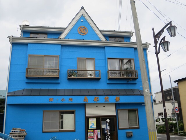 明治6年創業にして日本最古の南部せんべい店。青い外観が印象的