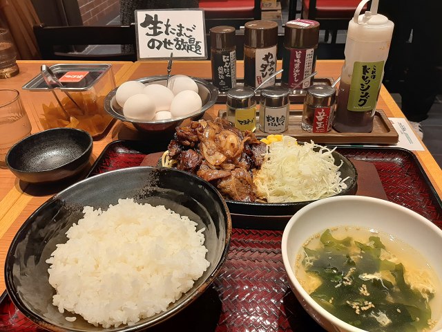 看板メニューの「やみつき牛カルビ焼肉W定食」を。